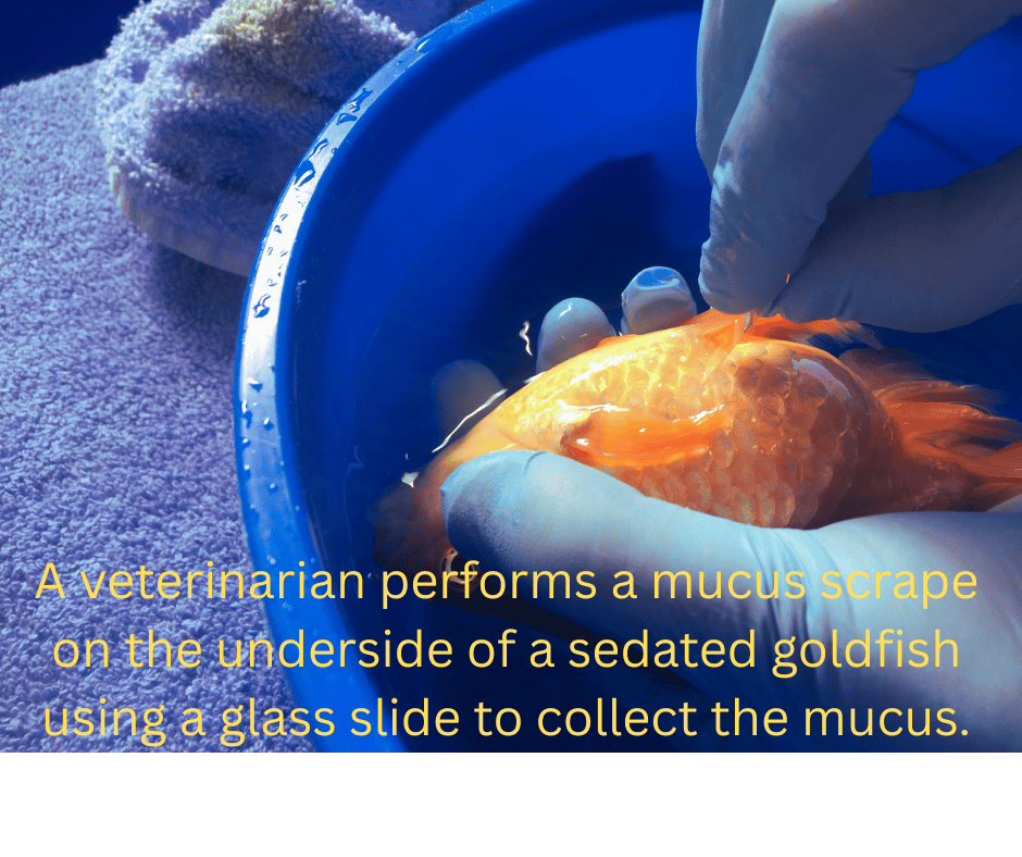 Microscopic examination of skin or gill scrapings to identify parasites.